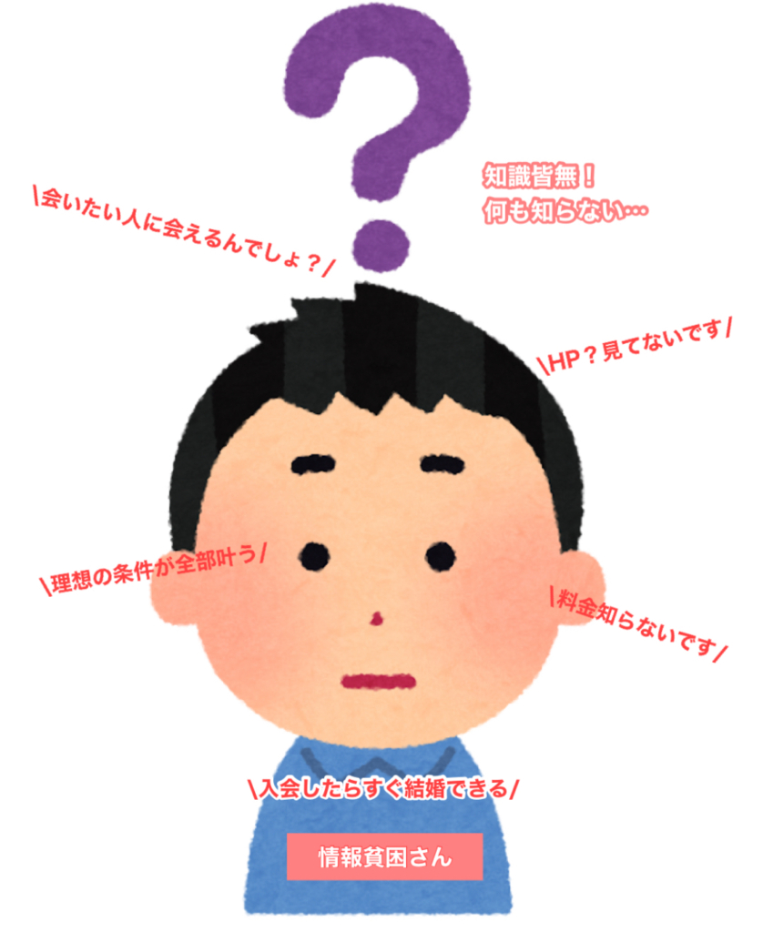 全く何も情報を得ておらず、婚活の常識すらの知識量がない方はもっと論外です。