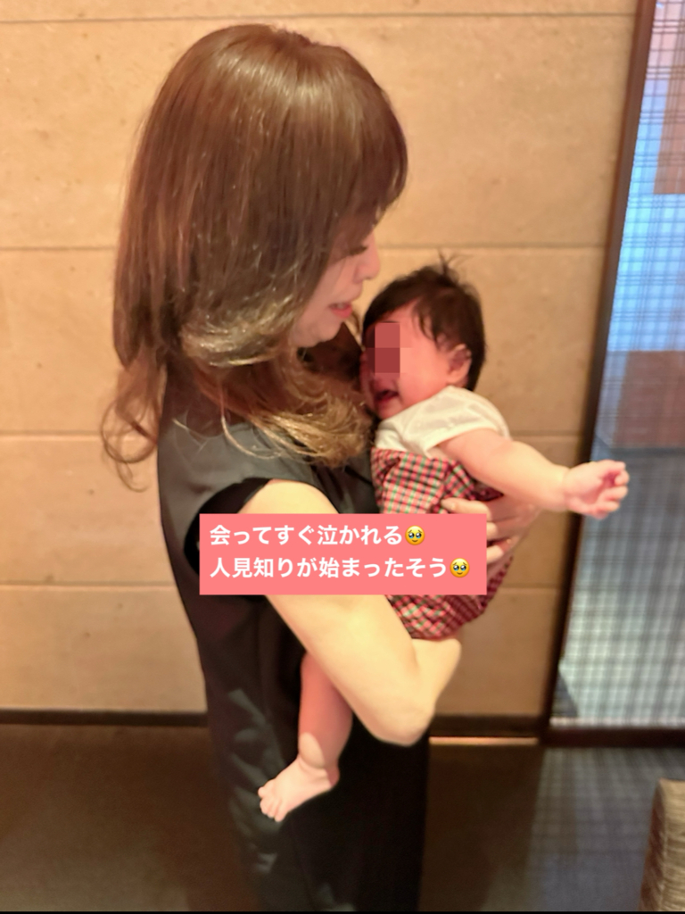 と意気込んで行ったものの、ちょうど人見知りが始まった頃のAちゃん、ギャン泣き👶