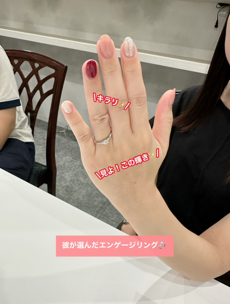 なんと!偶然にも、彼女が欲しかったブランドの指輪だったそうで、プロポーズの夜に、とても嬉しかった!と彼女からLINEが入っていたそうです☺️